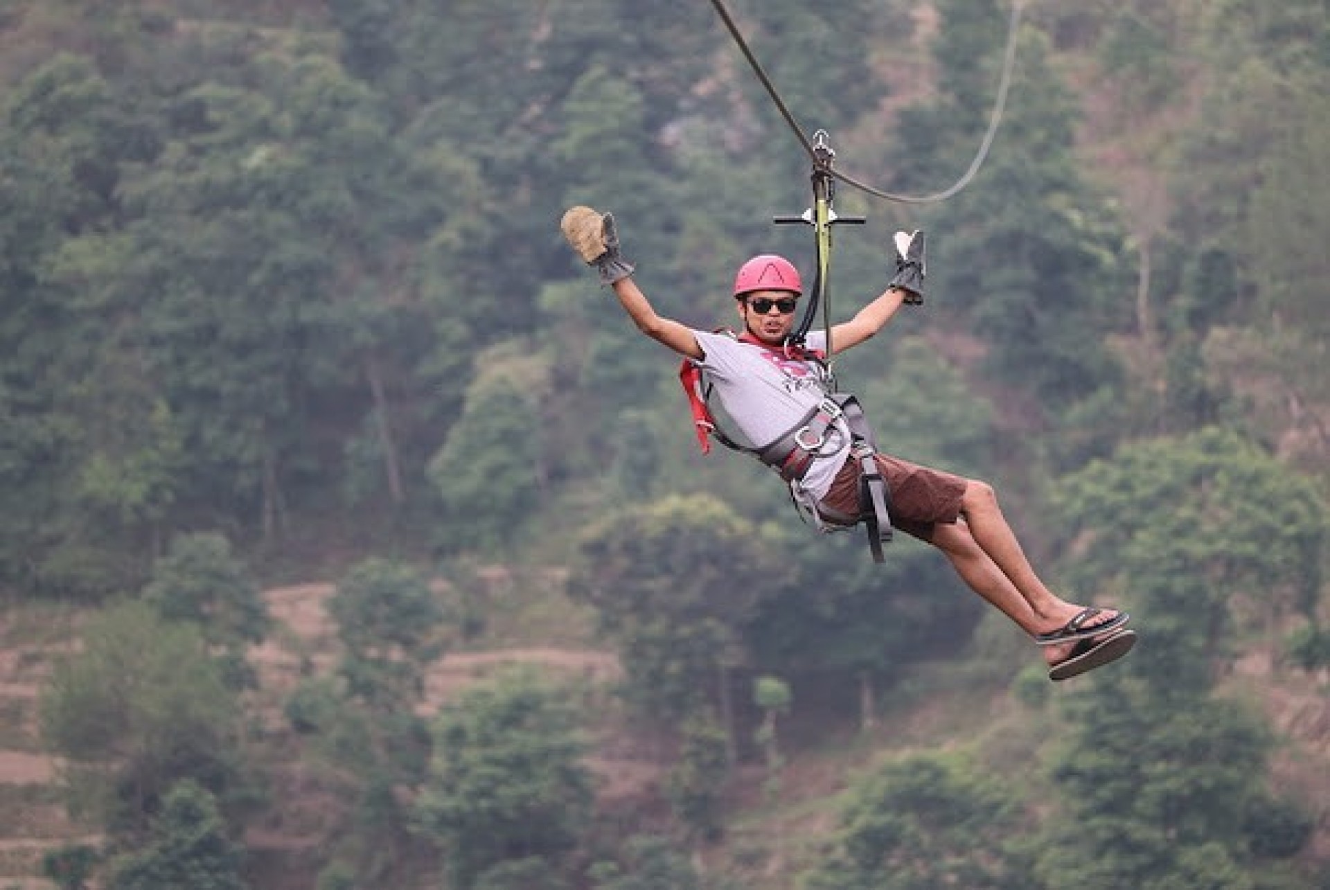 धुलिखेलमा अवस्थित जिपलाईनमा मनोरञ्जन लिँदै आन्तरिक पर्यटक