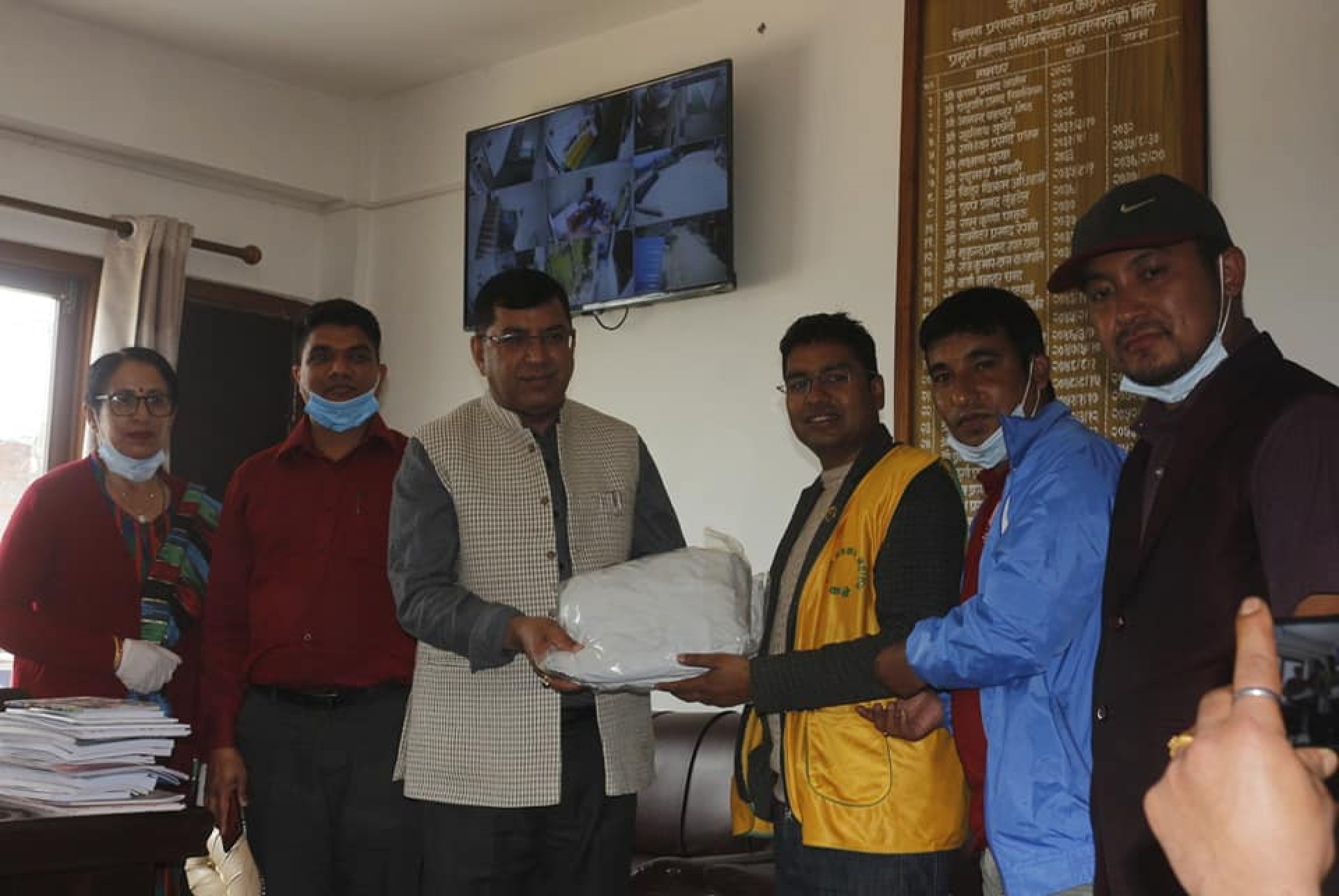 विमा क्षेत्रका एजेन्सीहरुको विश्वब्यापी महासंघ (एमडीआरटी) का नेपाल सदस्य एवं युनियन लाईफ इन्स्योरेन्सका सुमन भुजेल, होटल ब्यवसायी महासंघका केन्द्रिय सदस्य एवं भिआईपी थकाली रेस्टुरेन्टका प्रोपाईटर कृष्ण श्रेष्ठ र भिआईपी रेष्टुरेन्ट बनेपाका प्रोपाईटर प्रकाश श्रेष्ठले ब्यक्तिगत खर्चमा विपद ब्यवस्थापन समिति काभ्रेपलाञ्चोका लागि १० थान र नेपाल पत्रकार महासंघ काभ्रेका अध्यक्ष मोतीराम तिमल्सिना र महासंघ काभ्रेका कार्यसमिति सदस्य देवराज केसीलाई एक÷एक थान पिपिई उपलब्ध गराउनु भएको छ । स्वास्थ्यकर्मी, सुरक्षाकर्मीको सुरक्षासँगै निरन्तर समाचार संकलनका लागि अस्पताल लगायतका विभिन्न स्थानहरुमा पुग्दा सुरक्षाका लागि हस्तान्तरण गरिएका दुई थान पिपिई अध्यक्ष तिमल्सिना र सदस्य केसीले प्रमुख जिल्ला अधिकारी श्रवणकुमार तिमल्सिना मार्फत जिल्ला विपद ब्यवस्थापन समितिमा हस्तान्तरण गरिदिनु भएको छ । उहाँहरुले पत्रकारहरु भन्दा सुरक्षाकर्मी र स्वास्थ्यकर्मी महामारी नियन्त्रणका लागि पहिले उभिनु पर्ने भएकाले पत्रकारहरुका लागि भन्दा विपद ब्यवस्थापन समितिका लागि आवश्यक ठानेर हस्तान्तरण गरिएको बताउनु भएको छ । भुजेल र श्रेष्ठद्वयले विषम परिस्थितीमा ब्यवसाय भन्दा माथी रहेर ब्यक्तिगत रुपमा सहयोग गरेको उल्लेख गर्नु भयो । विपद ब्यवस्थापन समिति मार्फत परिचालन हुने गरी क्वारेन्टाईनका लागि खाद्यान्न उपलब्ध गराउने गरी तयारी गरिएको भुजेलले जानकारी दिनु भयो ।