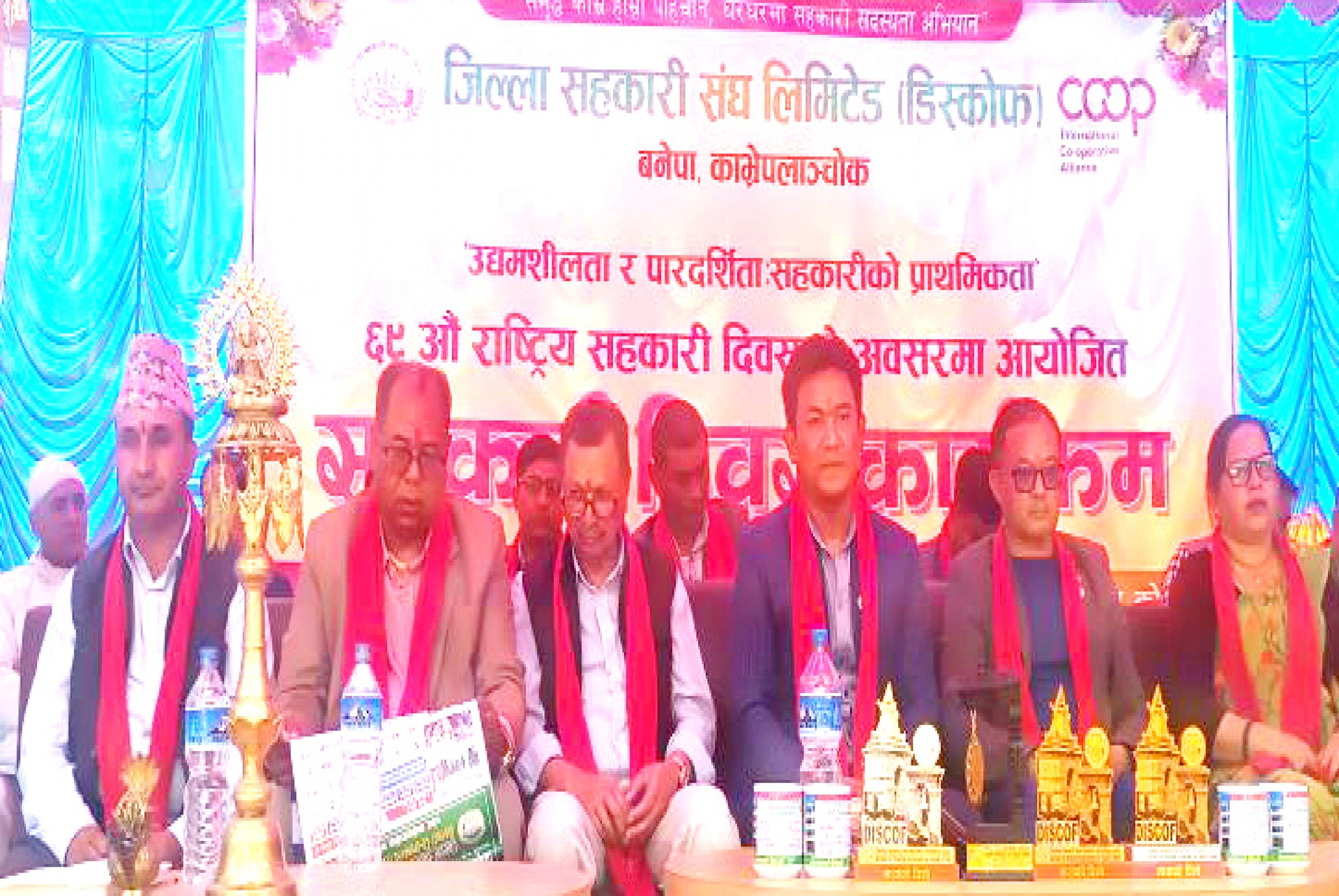 बनेपा/‘उद्यमशीलता र पारदर्शिता सहकारीको प्राथमिकता’ भन्ने मूल नाराका साथ जिल्ला सहकारी संघ लिमिटेड बनेपाले ६९ औँ राष्ट्रिय सहकारी दिवस विभिन्न कार्यक्रमहरू आयोजना गर्दै मनाएको छ ।