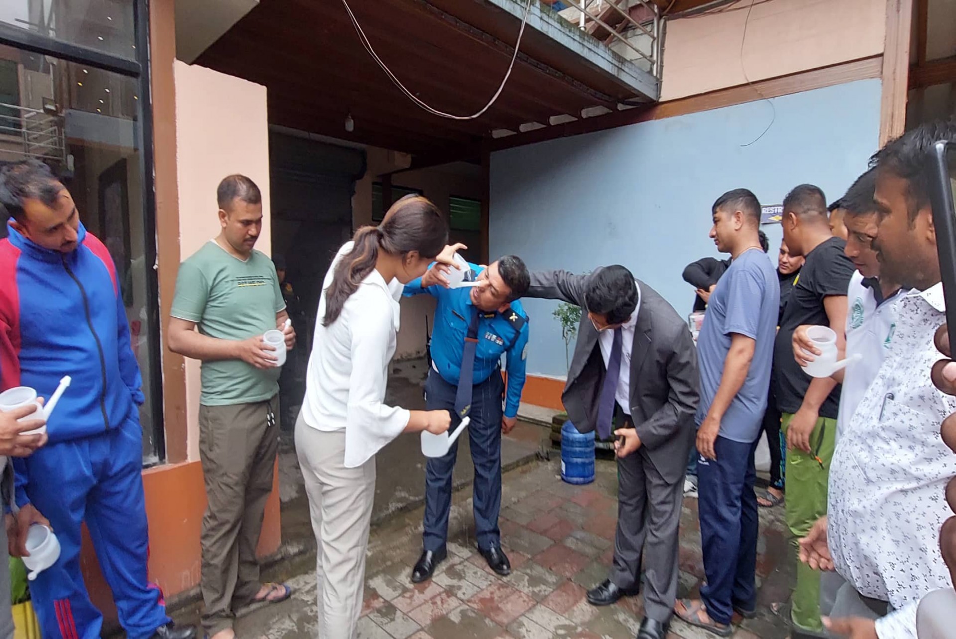 जिल्ला आयुर्वेद स्वास्थ्य केन्द्र बनेपाले जिल्लामा कार्यरत ट्राफिक प्रहरीहरुका लागि प्रदुषणबाट उत्पन्न स्वास्थ्य समस्या न्युनिकरणका लागि (नश्र्यकर्म) आयुर्वेद योग अभ्यास गराएको छ ।